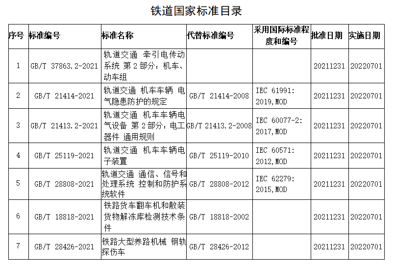 近日,由國家鐵路局組織編制的《軌道交通 牽引電傳動系統(tǒng) 第2部分:機車、動車組》等7項鐵道國家標準,經(jīng)國家標準化管理委員會審批后正式發(fā)布。7項標準中新制定1項,修訂6項,將于2022年7月1日實施。該7項標準是中國鐵路技術(shù)標準體系的重要組成部分,其發(fā)布為鐵路產(chǎn)品的設計、制造、檢驗等提供了技術(shù)依據(jù),對保障鐵路運營安全和提高產(chǎn)品質(zhì)量將起到積極的作用。